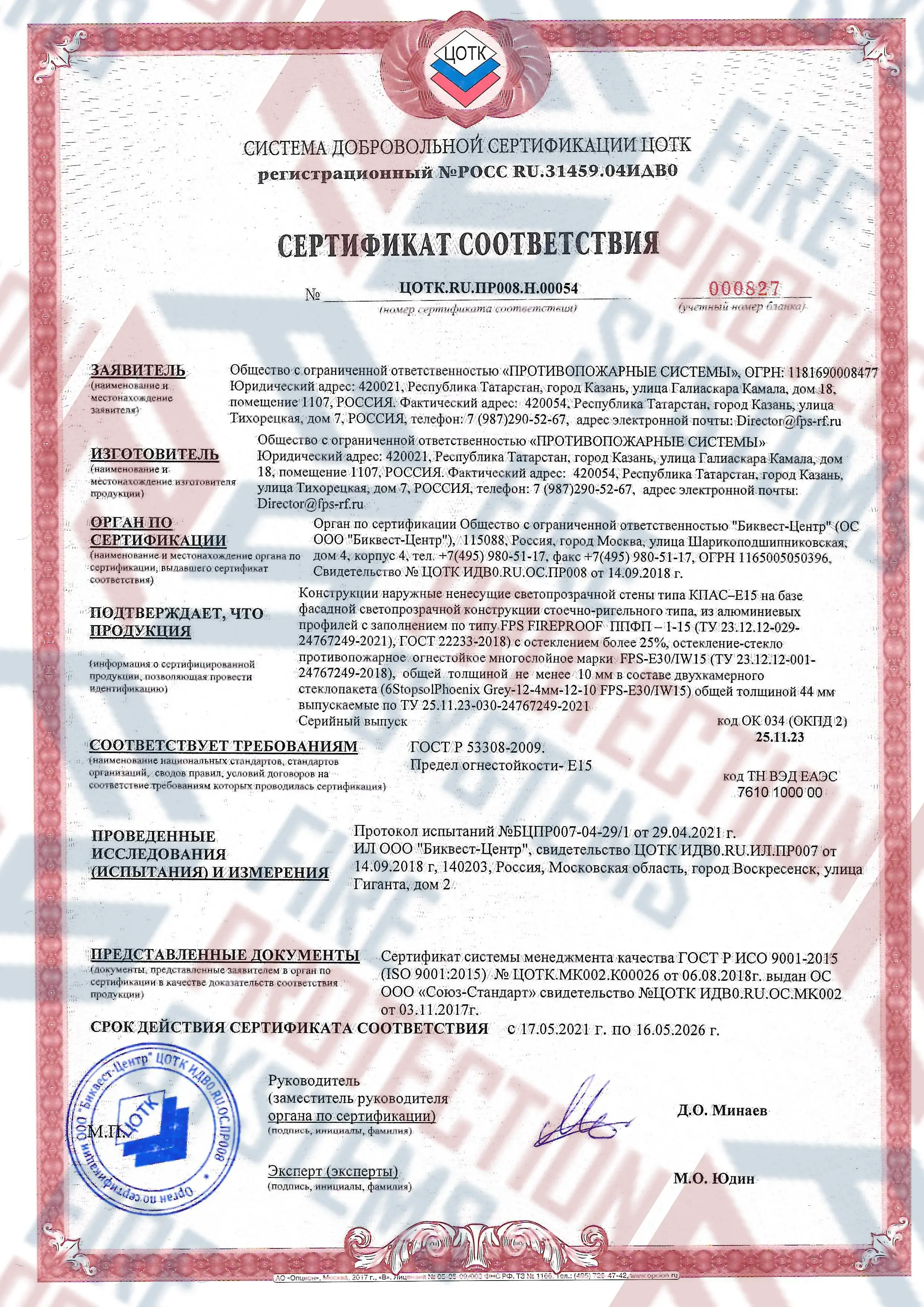 • Материалы — Качество и тип используемых материалов играют ключевую роль в формировании цены. Завод «Fire Protection Systems» применяет только сертифицированные и надежные материалы, что обеспечивает высокую степень защиты. Подбор материалов, таких как алюминий, стекло или специальные огнестойкие заполнители, также влияет на конечную стоимость.