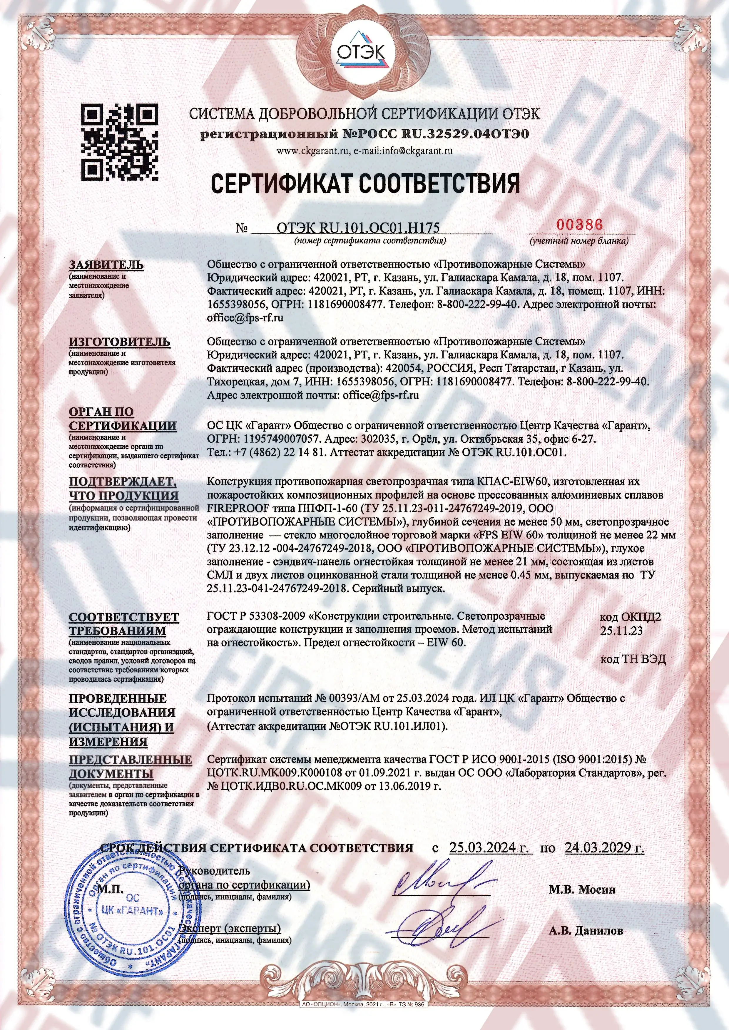 Заказ противопожарных светопрозрачных конструкций от завода «Fire Protection Systems»